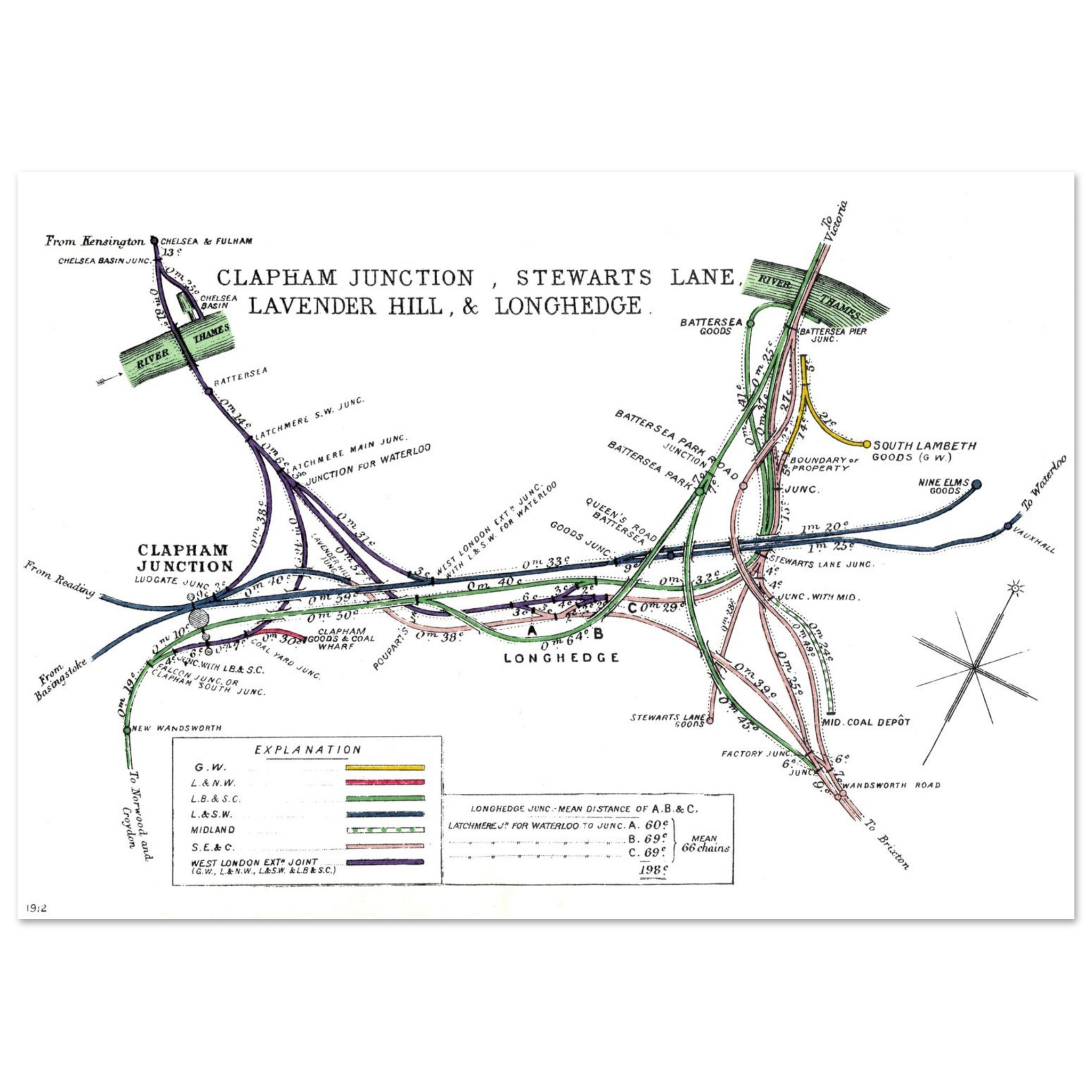 Clapham Junction 1912 Railway Clearing House Matte Paper Poster A3 (29.7 x 42 cm)